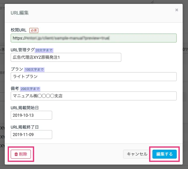 Section titled “校閲URLの内容を編集する”URL編集から編集することができます。